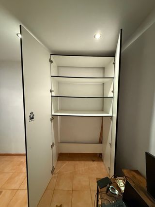 Armario de guardado con puertas y estantes. Está en muy buen estado. tiene algunos toques pero no se notan Profundo 57cm Ancho 130cm Alto 255cm NOTA: Es grande y hay que bajarlo 3 pisos por escalera. Es necesario 2 personas como mínimo. - Material: melamina reforzada
