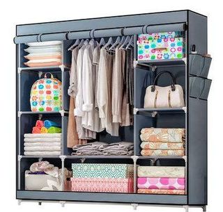 Armario ropero de tela grande, ideal para organizar tu ropa y accesorios. Su diseño funcional lo hace práctico para cualquier espacio. - Estructura de tela resistente. - Compartimentos amplios para colgar y doblar. - Bolsillos laterales para almacenamiento extra.