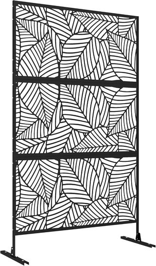 Separador Divisorio Decorativo De Exterior Con Motivos de Grandes Hojas Y 2 Patas, Pantalla Para Jardín Alta de Acero, Para Balcón Y Terraza, 122X45X198 Cm, Negro