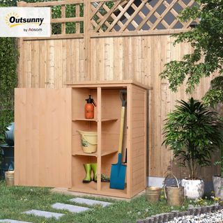 Armario De Jardín Para Objetos Con 2 Estantes Con Estacas, Casetas De Jardín De Madera De Abeto Con Techo De Asfalto Impermeable, 127X65X159.5/168 Cm, Color Madera
