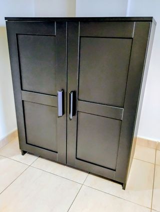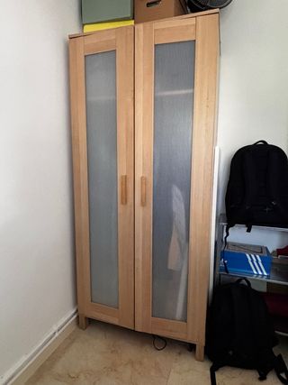 Se vende armario con puertas BRIMNES en perfecto estado, sin marcas, sin roces, sin desperfectos. Las baldas son intercambiables en altura, sus medidas, 78 cm de ancho, 95 cm de alto y 41,5 cm de profundidad.