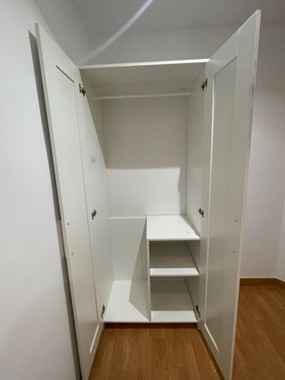 Armario modelo Brimnes de Ikea, solo tiene marcas de montaje/desmontaje por lo demás está perfecto. Tiene más baldas que el original ya que las hicimos a medida. Lo tengo desmontado para transportar facil.
