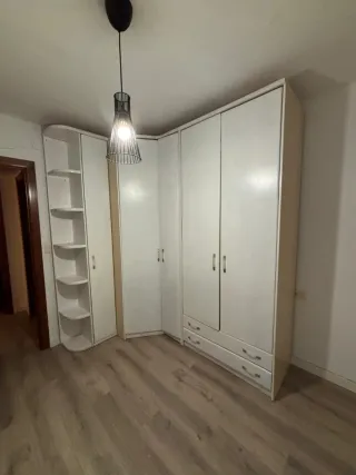 Armario de esquina en color blanco. - Diseño de puertas con paneles. - Tiradores redondos. - esquinero parte izquierda con estantes - esquinero parte derecha barra alta para colgar abrigos etc - un 3er módulo adicional sin puerta con baldas - 4o módulo cajones + barra sin puerta Pd: si hay interés en un módulo concreto lo hablamos