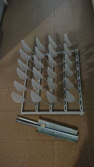 Balda o estante ikea metálico gris komplement, para armario pax ikea. Organiza los zapatos para que se vean bien y protege el armario. Se quita fácilmente para poder limpiarlo. Sólo una unidad. Mas productos Ikea armarios en mi perfil.