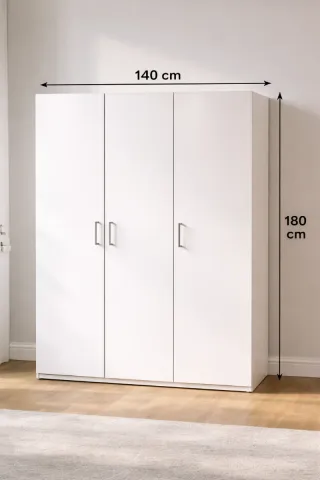 Armario de IKEA de tres puertas con un diseño moderno y limpio. Ideal para organizar tu ropa y accesorios. Dos puertas con barra para colgar y una con estantes. Algún signo de uso. No se hacen envíos. Ya está desmontado, muy fácil de transportar y montar. - Tres puertas abatibles. - Amplio espacio interior.