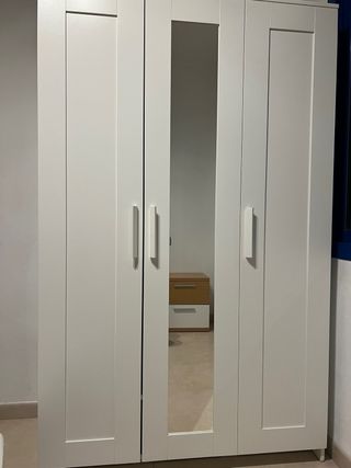 Armario de IKEA con puertas correderas y acabado en blanco. 2 gabinetes disponibles . - Diseño moderno y funcional. - Amplio espacio de almacenamiento. Puertas con espejo. Armario IKEA, Tamaño 0.50 m x 0.35 m x 2.36 m, las puertas son blancas , incluye perchero y perchero. Precio 150 euros Armario IKEA, Tamaño 1,0 m x 0,35 m x 2,36 m, puertas blancas, completo con perchero y cajones de lavandería. Precio 350€