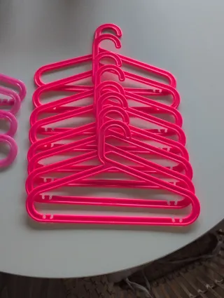 Lote de 12 perchas de la marca Ikea en color rosa. - Fabricadas en plástico resistente. - Diseño ligero y funcional.
