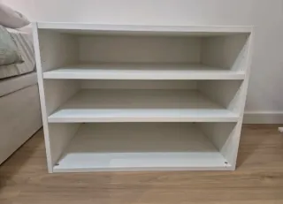Estantería modular de Ikea, ideal para organizar tu espacio. - Diseño abierto con tres baldas. - Acabado en color blanco. - Fabricada en madera. Está en perfecto estado. Las medidas son 80cms de ancho, 55cms de profundo y 60cms de alto. Especialmente diseñado para almacenaje centro de los armarios. Viene ya montado.