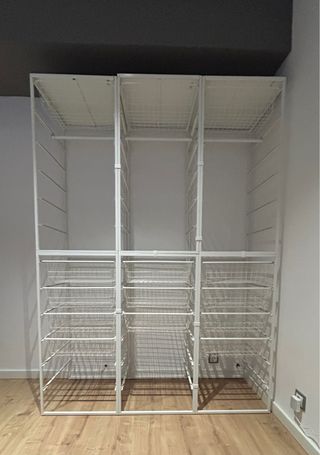 Sistema de almacenaje modular Jonaxel de IKEA. Ideal para organizar tu ropa y accesorios. - 6 estructuras de 50x51x104 - 14 cestos de rejilla - 3 barras para colgar perchas