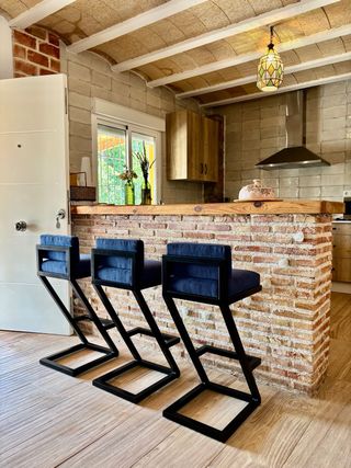 Se venden taburetes altos de estilo industrial a medida. Son ideales para una cocina o barra de bar. Realizamos en distintas medidas y acabados. Síguenos en Instagram: @mfironwood - La estructura es de metal resistente. - Los asientos son tapizados de tela azul marino, muy cómodo. # Cocina, mesa, cama, silla, sofá, banco, salón, baño, madera, habitación, tv, smart tv, iphone, casa, comedor, samsung, sillón, estantería, mueble, ikea, armario, perchero, lámpara, espejo, patinete, estilo industrial, bar, pub, cafetería, tienda, restaurante, musica