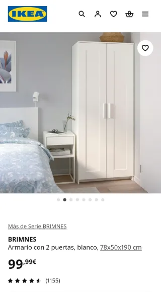 Armario IKEA en muy buen estado. Lo he desmontado entero con ayuda de mi tío, y además reparé todas las partes que estaban picadas, así que está perfecto para montarlo de nuevo. 📍 Ahora mismo lo tengo guardado en mi trastero en Cornellà de Llobregat (yo vivo en Vallirana). Esto significa que hay que organizarse conmigo para quedar y recogerlo. No es para “ir a verlo”, ya que está completamente desmontado. ⛽️ Tened en cuenta que ir hasta Cornellà me supone tiempo y gasolina, así que os pido seriedad al concretar la cita. 💡 Detalles importantes: Fabricado en madera de gran calidad (no melamina barata).