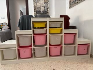 Conjunto de muebles de almacenaje infantil IKEA, en color rosa y blanco. Ideales para organizar la habitación de los más pequeños. - Perfecto estado de conservación. - Incluye 10 cajones de plástico.Los cajones de plástico son los q están mas deteriorados los muebles están en perfecto estado - Estructura de madera.