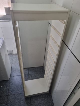 Mueble de baño Ikea Godmorgon en color blanco, de madera. Está en buen estado. Medidas 30 fondo x 40cm ancho x 192cm alto Viene con patas - Perfecto para organizar el baño. - Diseño elegante y minimalista. - Ofrece mucho espacio de almacenaje. precio original 119€