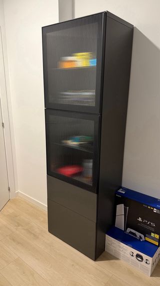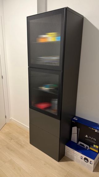 Armario alto Ikea negro con puertas de cristal