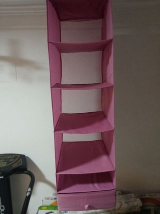 Organizador Skubb de Ikea. De tela rojo con 5 espacios para guardar todo tipo de ropa en el armario. En muy buen estado, sin apenas uso.