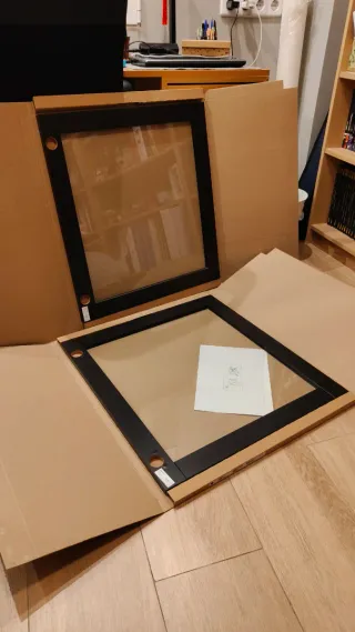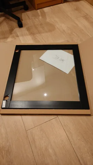 Dos puertas de armario SINDVIK de Ikea en color negro/marrón. - Medidas: 60x64cm. - Marco de madera con panel de cristal. Precio para las dos unidades. Posibilidad de comprar cada una por separado a 15€. Las bisagras NO ESTÁN INCLUIDAS.
