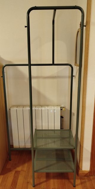 Perchas metálicas de Ikea (ya descatalogadas) para colgar 5 pantalones. Son dos perchas de color gris, en buen estado y listas para usar. Ideales para ahorrar espacio en el armario (tienen una marca de uso donde se apoyan para colgar, se muestra en las fotos). Entrega en Getafe (Buenavista) o en Fuenlabrada (Loranca, solo días lectivos). También lo puedo enviar. (El precio es por las 2 unidades). #vintage #komplement