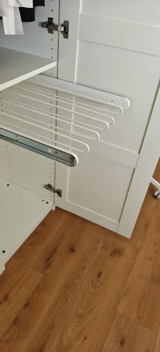 Perchero extraíble para armario PAX Komplement. Para ponerlo a un lado del interior del armario y sacarlo, muy útil sobre todo para bolsos, bufandas... Se venden o los dos juntos o separados, 7€ cada uno. Precio original 12€ la unidad.