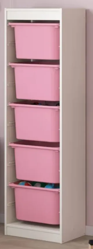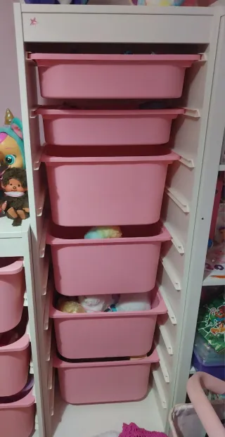 Mueble de Almacenamiento madera blanco y cajones de plástico en rosa