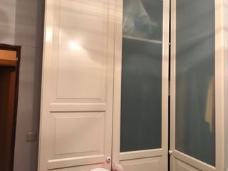 Conjunto de tres puertas para armario de Ikea. sin bisagras - Color blanco. - Diseño clásico con paneles. las puertas del cristal llevan como unos cuadros ..... nunca los puse adjunto foto de como queda los tengo sin estrenar los regalo miden 2,29 alto por 50 ctms las tres por 30 euros No incluye bisagras