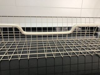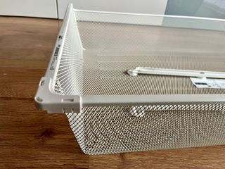 Conjunto de dos cestas de almacenamiento de Ikea. - Diseño de rejilla. - Acabado en blanco -Para instalar dentro del armario,tiene los raíles y los tornillos.