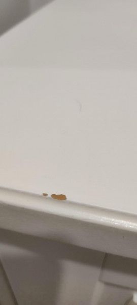 Armario lacado en blanco, modelo descatalogado. Tiene algún golpe en la encimera y en una de las patas delanteras.