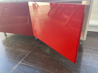 2 puertas Besta de Ikea en 60x38 y color rojo. SOLO SE VENDEN LAS PUERTAS. En condiciones aceptables como se ven en las fotos con lijeras marcas de uso. Se incluyen herrajes de montaje y frenos para cierre suave. PRECIO PARA LAS 2 PUERTAS