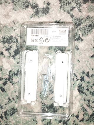 Vendo un par de tiradores de armario blancos de IKEA, modelo HACKAS. Son nuevos y están sin usar. - Miden 100 mm. - Incluyen tornillos para su instalación. - Son de color blanco y parecen estar en perfectas condiciones.