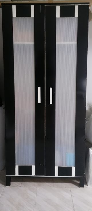 Armario Ikea marrón oscuro puertas translúcidas