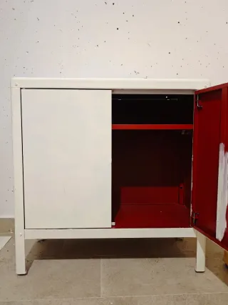 Armario metálico de IKEA totalmente funcional. PRECIO NEGOCIABLE Pintado solo la parte que quedaba visible. La pintura no está en perfecto estado, por lo que necesita ser repintado si se busca un acabado más estético. Por este motivo, el precio es la menos de la mitad del precio original. Al ser de metal, es resistente y también ideal para trastero, garaje o zonas exteriores.