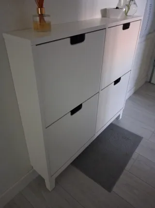 Producto para entregar en mano no se envía, Mueble zapatero de Ikea con cuatro amplios departamentos para organizar tu calzado. Su diseño moderno y funcional se adapta a cualquier entrada. - Cuatro compartimentos de gran capacidad. - Acabado en color blanco.