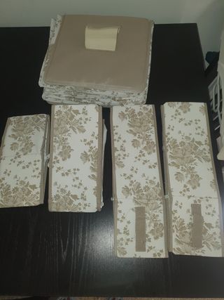 Conjunto de armarios de tela con un diseño floral en tonos beige y marrón. - Diseño floral detallado. - Acabado en tela. - Color beige y marrón. Para colar o bien en perchero o bien dentro del armario. En ikea ahora mismo de tela mas fina está por 33,97€