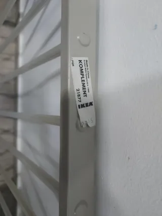 Barra Komplement para armario de IKEA. - Fabricada en metal. - Color blanco. - Longitud: 75 cms