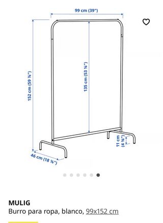 Burro de ropa MULIG de IKEA en color blanco. Ideal para organizar tu ropa. - Diseño moderno y funcional. - Estructura metálica. - Medidas: 99x152 cm. NUEVO, sin sacar de su embalaje original
