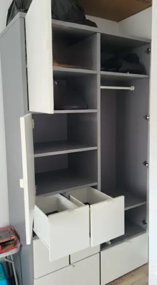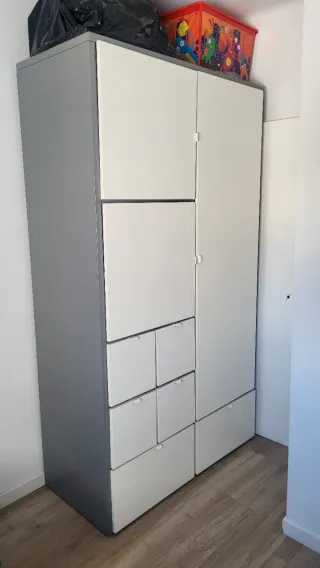 Es un armario estupendo, lo vendo porque me cambié de piso y no me sirve para la habitación. Armario modular con diseño, bastantes cajones, moderno y funcional. - Combinación de colores gris y blanco. - Fabricado en materiales resistentes.