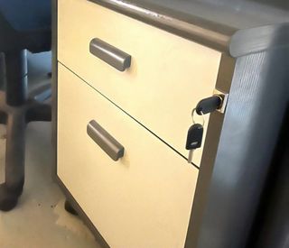 Mueble cajonera oficina. Cierre con llave. Color gris claro bordes gris oscuro Se vende todo el mobiliario de oficina a juego. Sus mesas escritorios para despacho correspondientes, armarios, archivadores etc 6 unidades disponibles (dos cajones o 3) En las de dos cajones, el cajón inferior (el grande), tiene sistema de archivo (carriles para carpetas colgantes). Ruedas Son muebles muy buenos, marca ACI mobiliario oficina. Si buscáis muebles calidad tipo ikea, estos no son vuestros muebles. Cada cajonera a nosotros nos costó casi 300 € Fondo 47 Alto 58 Ancho 45,5