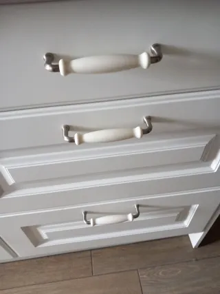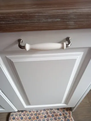 Conjunto de22 tiradores para muebles, perfectos para dar un toque elegante a tus cajones o armarios. - Diseño clásico con cuerpo blanco y soportes plateados. - Materiales de calidad para mayor durabilidad. Son de Ikea. Distancia de tornillo a tornillo 12, 8 centímetros