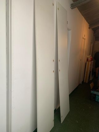 2 puertas blancas lisas para armario PAX. Precio por las dos. No se incluyen bisagras. En buen estado. Tienen alguna rozadura sin importancia en el borde.