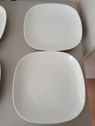 Bonitos platos grandes, modelo VÄRDERA, de Ikea, está hecho de porcelana de feldespato, un material muy duradero y resistente a los impactos. De color blanco. Esta vajilla de forma cuadrada y estilo clásico dará a tu mesa un aspecto original y atemporal a la vez. Es apto para microondas y apto para lavavajillas. Tienen poco uso y están bien conservados. Diseñado por: Susan Pryke Medidas: 25 cm x 25 cm 👣👣Para ver más cosas de casa de mi armario pincha en el #. #isabel111941casa #isabel111941vajillas