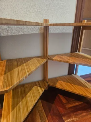 Estantería esquinera de bambú, perfecta para aprovechar espacios. - Diseño de 3 niveles. - Ideal para baños o cualquier rincón.