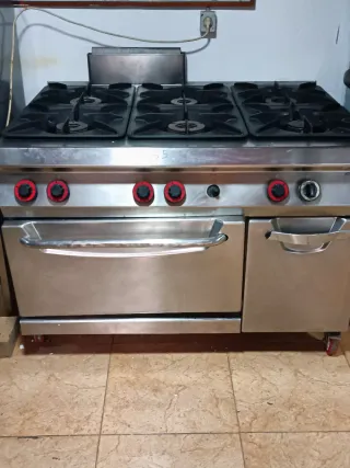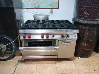 Cocina industrial de acero inoxidable con tres fuegos y horno.con armario porta bombonas válvula presostatica Medidas 120x6ox90 640644996