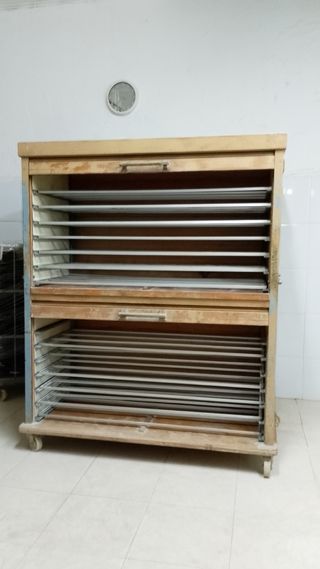 Armario de fermentación de panadería. 12 tablas en buen estado. Usado hasta el 31 de Julio del 2024. El precio no incluye el envío. Las tablas miden 139 cm x 59 cm. El precio no esta abierto a regateos.