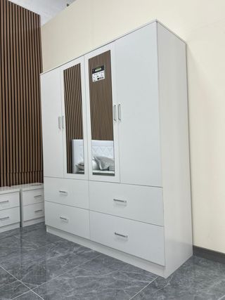 ☎️ 680*558*196 Armario ropero blanco de 4 puertas totalmente nuevo, ideal para dormitorio de matrimonio, juvenil o habitación de invitados. Diseño moderno y elegante. Incluye cajones inferiores de gran capacidad 🆕 Estado: Nuevo, sin uso 📐 Medidas Alto: 190 cm Largo: 160 cm Ancho: 50 cm
