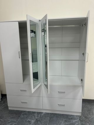 680*558*196 ☎️ Armario totalmente nuevo, sin uso, en color blanco moderno con espejos . Ideal para dormitorio principal, habitación juvenil o piso de alquiler. Destaca por su gran capacidad de almacenamiento, perfecto para mantener toda tu ropa organizada gracias a sus múltiples compartimentos y cajones. ✅ Nuevo a estrenar ✅ Diseño elegante y actual ✅ Espejos integrados (no necesitas comprar uno aparte) ✅ Gran espacio para ropa, zapatos y accesorios ✅ Fácil de combinar con cualquier decoración ✅ Ideal para pisos, apartamentos o casas 📏 Medidas: Alto: 190 cm Largo: 160 Ancho 50 cm