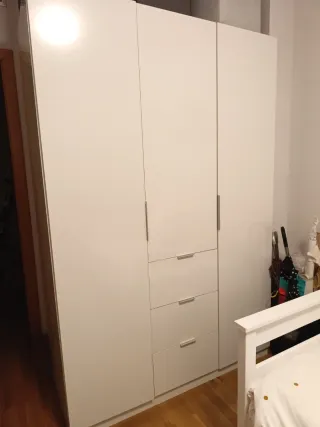 Armario blanco 3 puertas con espejo – Gran capacidad Vendo armario blanco de 3 puertas, en muy buen estado. Diseño elegante y atemporal, ideal para dormitorio juvenil o principal. Incluye puerta central con espejo, muy práctico y funcional. 🧺 Características: • 3 puertas • Espejo central de cuerpo entero • Mucho espacio de almacenaje • Color blanco, fácil de combinar • Puertas con tiradores negros (detalle moderno) 📏 Medidas: 120x60x191 cm 📍 Entrega en mano.