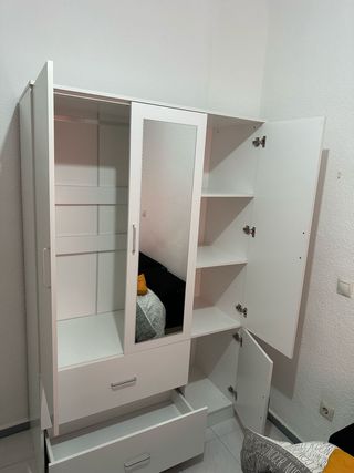 680*558*196 ☎️ Armarios nuevos a estrenar, ideales para dormitorio, piso, casa o apartamento. Diseño moderno y funcional, con puertas abatibles y espejo. Fabricados con material resistente y de calidad, gran capacidad de almacenaje. 🚪 Modelos disponibles: Armario 2 puertas con espejo → 130 € Armario 3 puertas con espejo → 195 € Armario 4 puertas con espejo → 260 € ✅ Características: ✔ Armarios nuevos ✔ Con espejo incorporado ✔ Gran capacidad de almacenaje ✔ Ideales para dormitorio juvenil o matrimonio