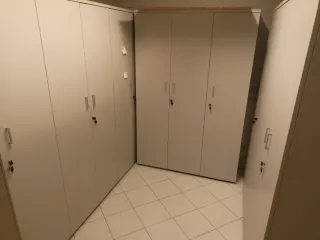 Conjunto de armarios de oficina metálicos. - Color gris y blanco. - Cada armario incluye su propia llave para mayor seguridad. Escucho ofertas