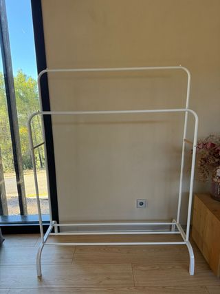 Burro para colgar ropa, ideal para organizar tu armario o recibidor. Su diseño sencillo se adapta a cualquier espacio. - Estructura de metal. - Color blanco.