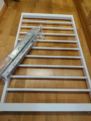 Pantalonero de la marca Ikea, diseñado para organizar tus pantalones de forma eficiente. - Estructura principal de madera - Detalles en plástico y madera. Lleva un picacito.pequño