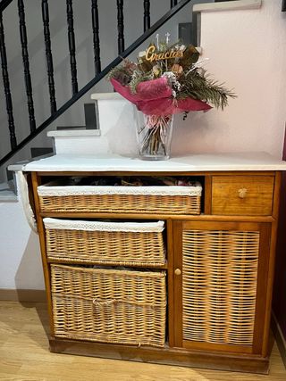 Mueble recibidor con cestas de mimbre
